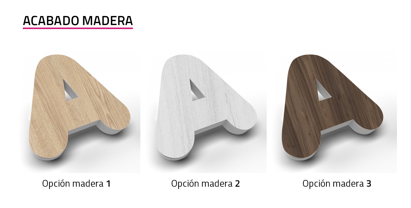 Letras corpóreas de madera contrachapada con impresión directa UVI....