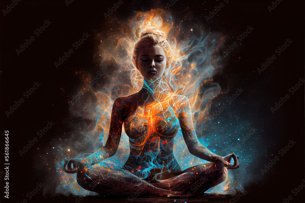 Esoteric spiritual meditation concept, woman meditating in lotos position #561866645