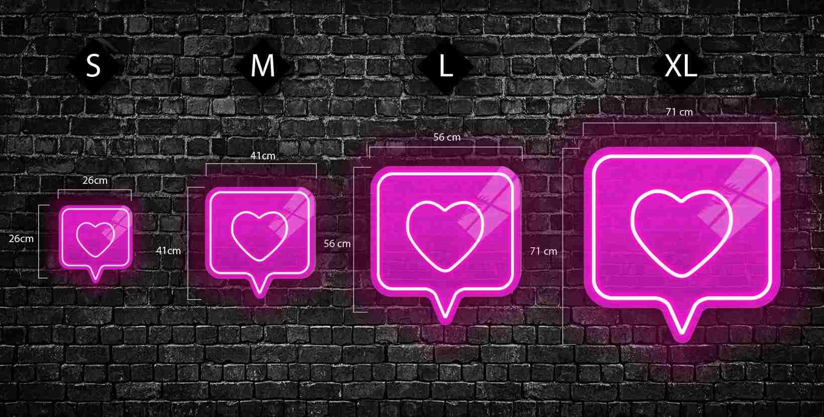 Elige tu Neón de Like en varios colores y tamaños. Puedes colgarlo o atornillarlo.