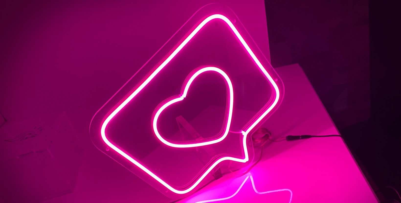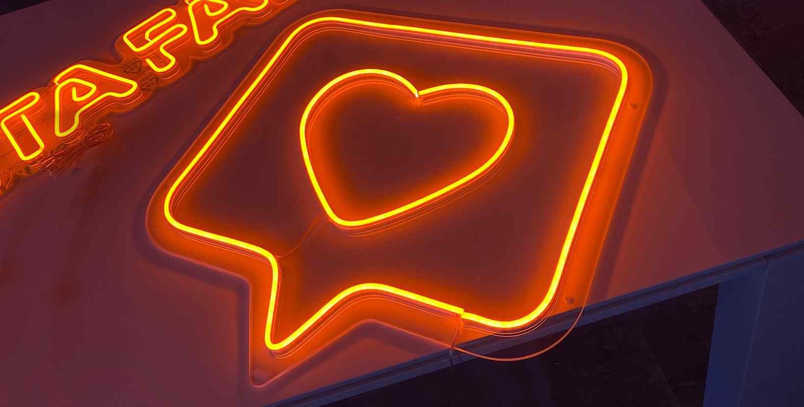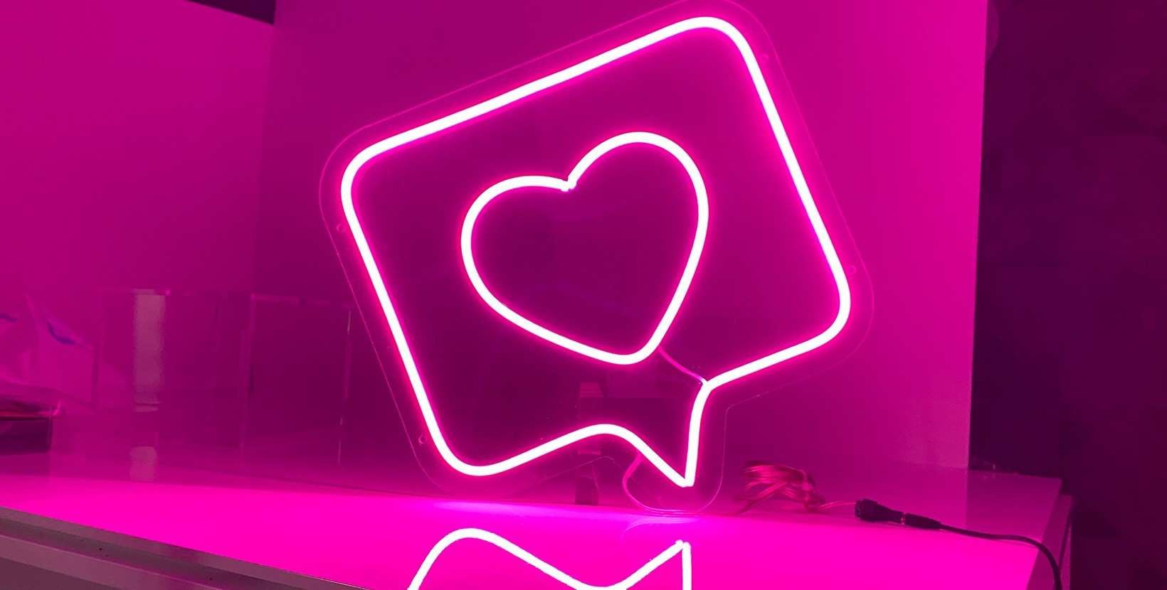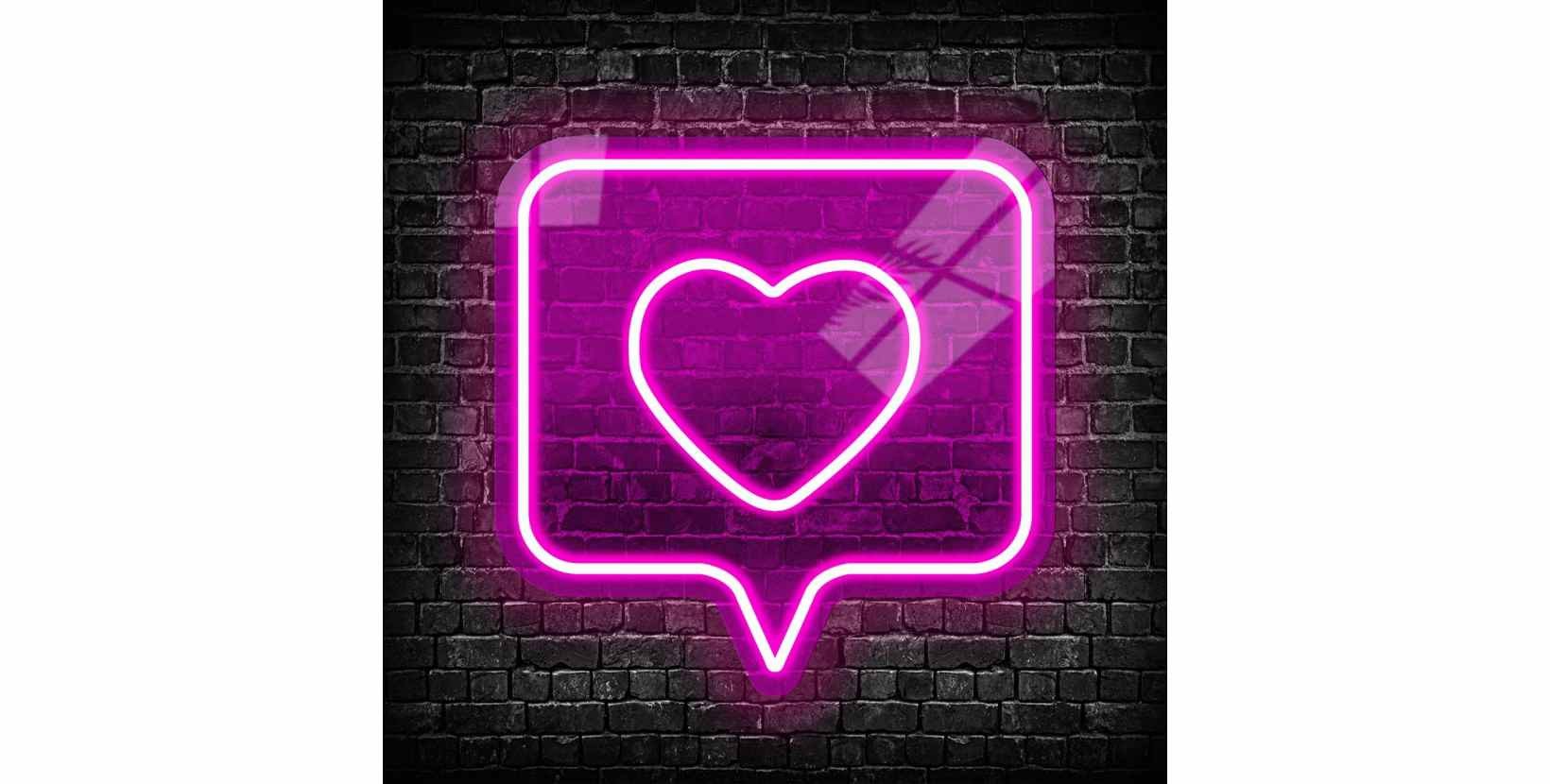 Neón led like. Las cosas como son, si me gusta me gusta. Neon con corazón y 4 tamaños a elegir con temática de redes sociales. Se monta sobre panel de metacrilato transparente y con luz de color rosa.
