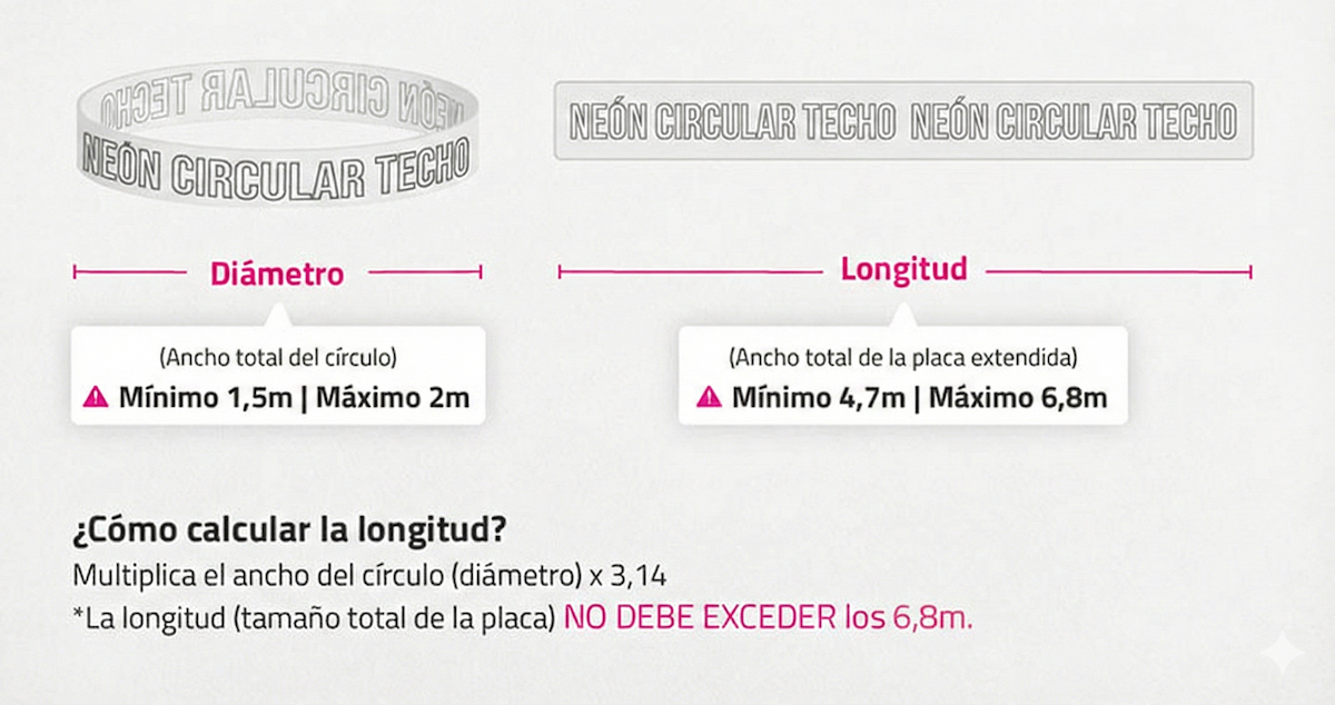 Este neón está compuesto por una base de policarbonato en forma circular con bandas de neón LED flexibles que le dan este efecto de 360º.