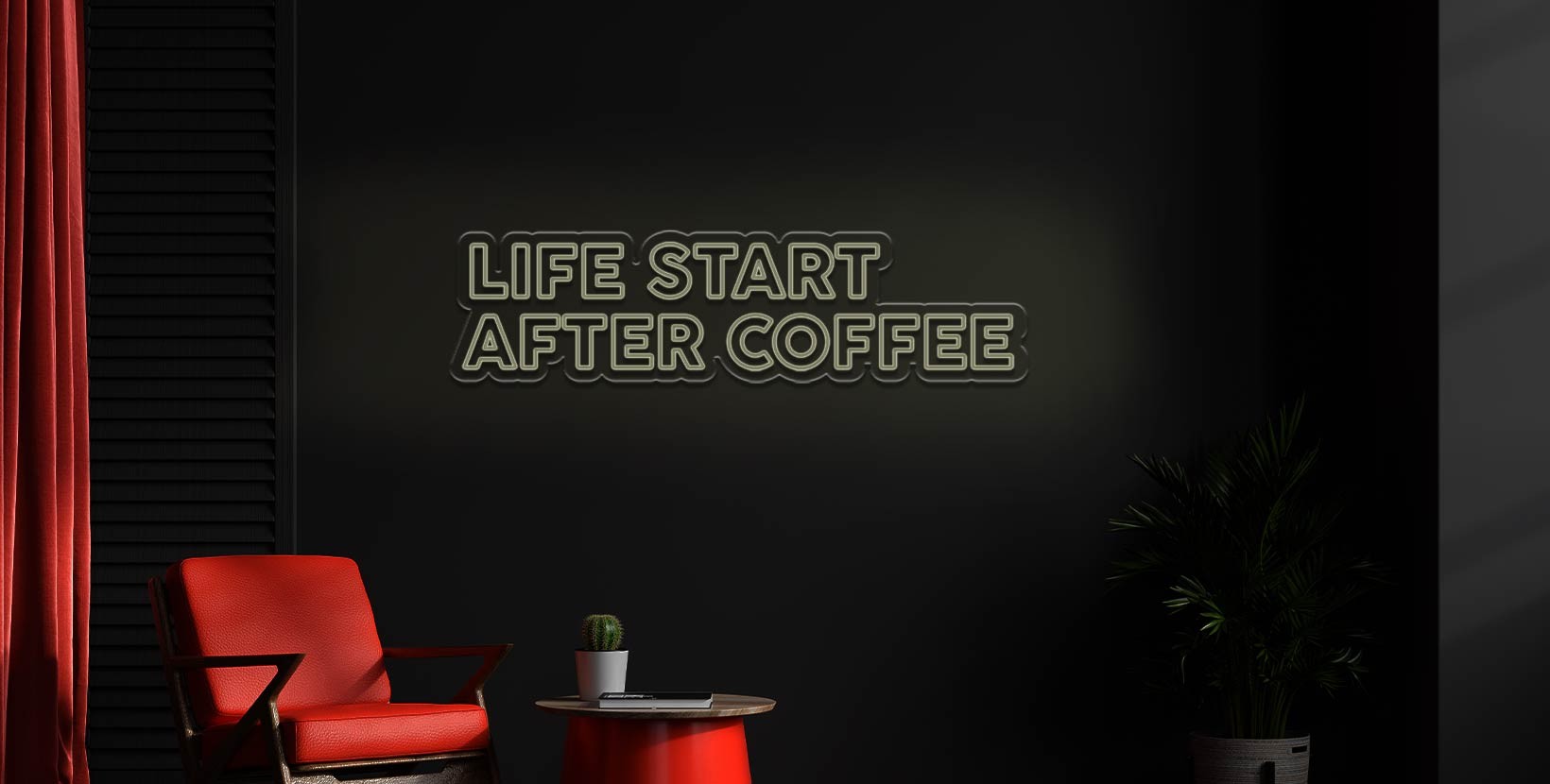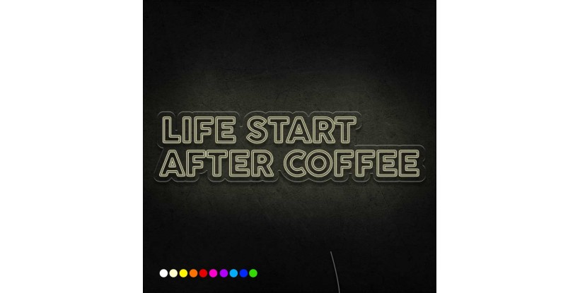 El neón led Neón Life start after coffee es una lámpara de neón que reproduce la frase "Life start after coffee" en un elegante diseño.