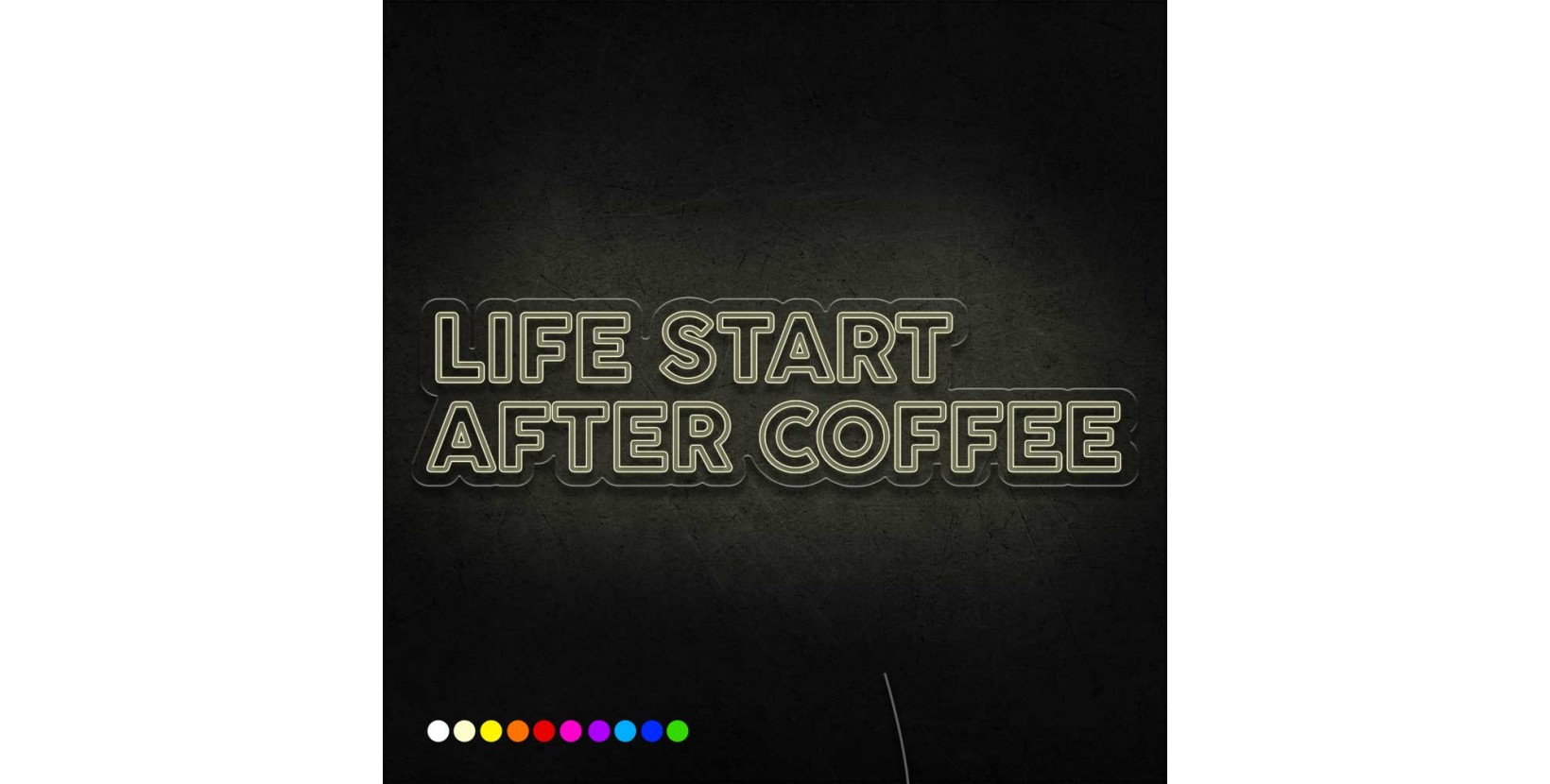 Está fabricada con materiales de alta calidad que garantizan su durabilidad y seguridad. Además, tiene un bajo consumo energético y no emite calor, por lo que puedes colocarla donde quieras sin riesgo de quemaduras. El neón led Neón Life start after coffee puedes elegirlo a tu preferencia.