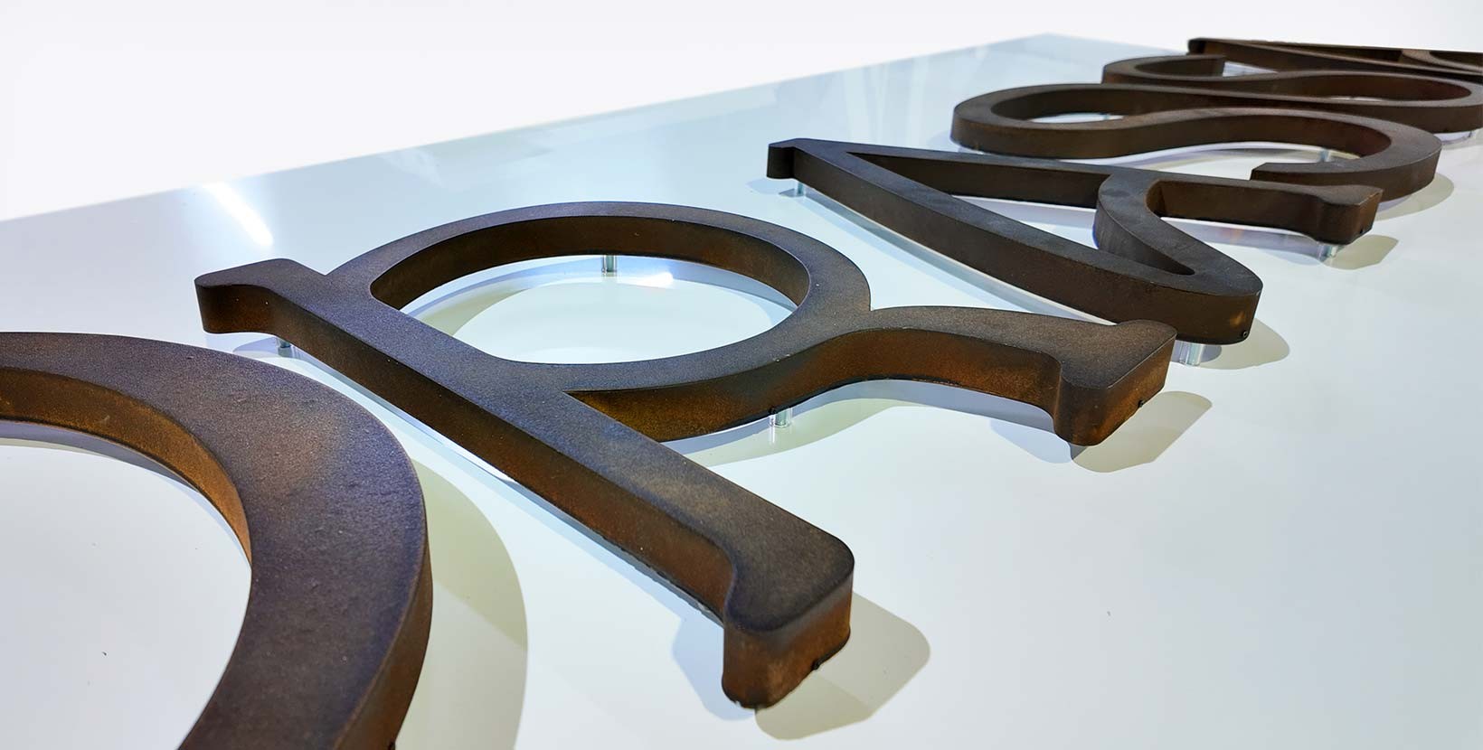 Anteriormente realizábamos estas letras con acero de corten original pero actualmente hemos cambiado el sistema a un lacado que imita el efecto del acero corten.
