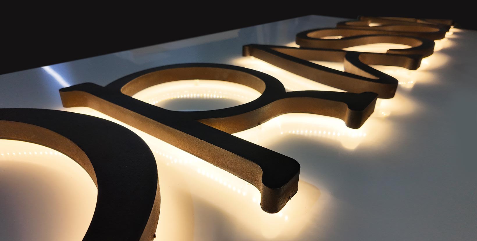 Las letras corpóreas huecas de latón son un tipo de letra corpórea...