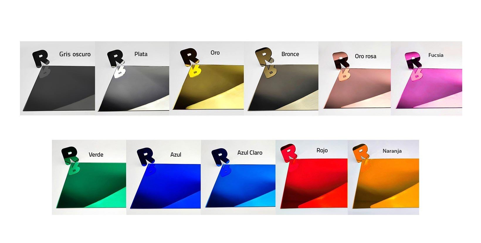 El metacrilato espejo no solo es color plata, como los espejos tradicionales. Una de sus características es que cuenta con muchas opciones de color, sin perder el efecto espejo y conservando su opacidad (es decir que no se transparenta).