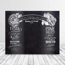 En Rotula Tú Mismo encontrarás la mayor variedad del mercado en diseños de photocall para bodas: estilo retro, vintage, popero, moderno, atrevido y diseños de photocall originales.