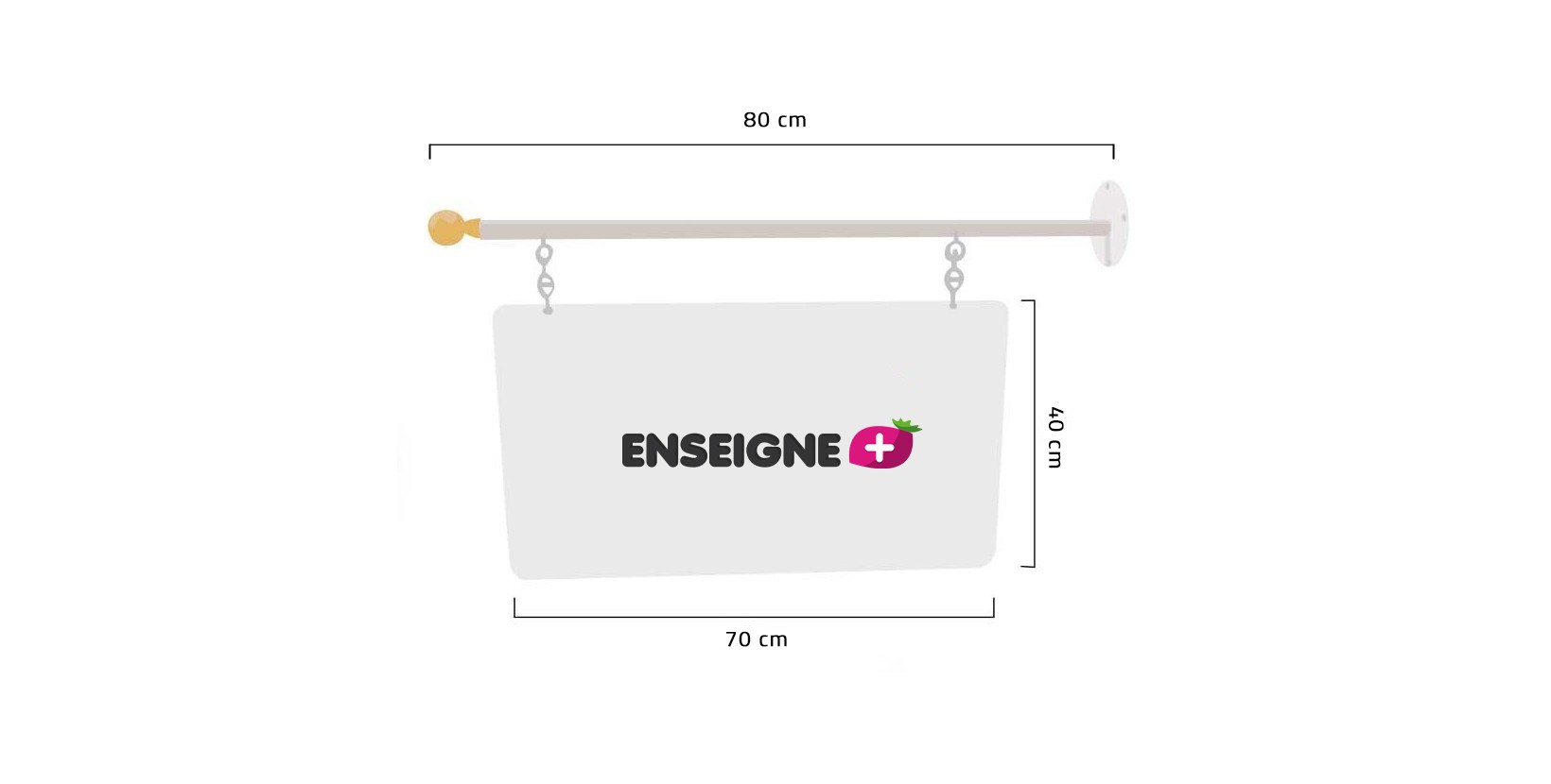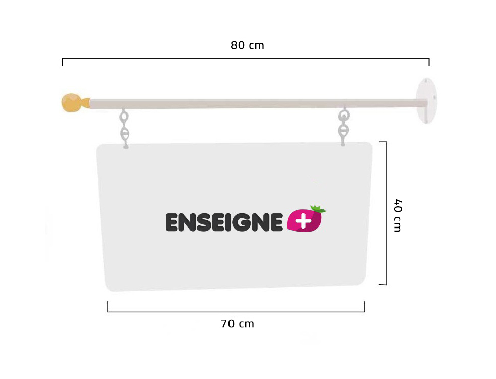 La banderola se compone de un mástil de hierro lacado con una bola metálica al final, del cual cuelga un panel de composite enganchado por unas cadenas de metal.