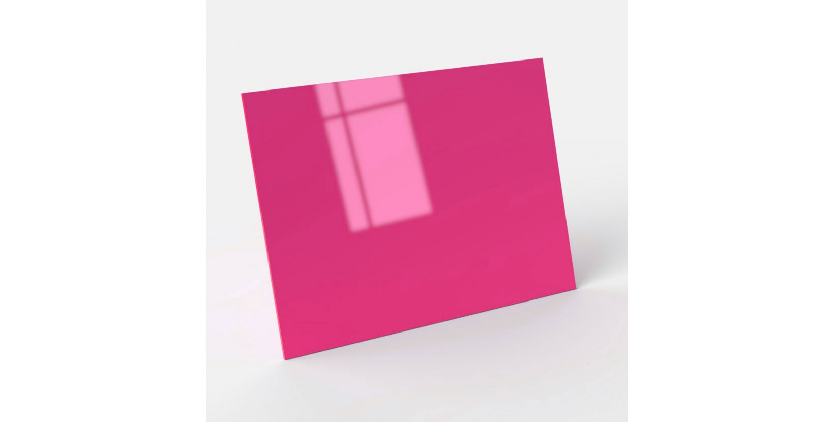 Placa de metacrilato de 3 mm de espesor, en un tono fucsia sólido y vibrante, ideal para proyectos de rotulación, decoración o diseño. Puedes cortarla a medida o elegir la forma que mejor se adapte a tus necesidades.
