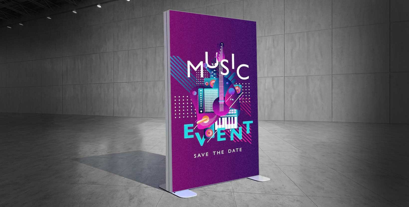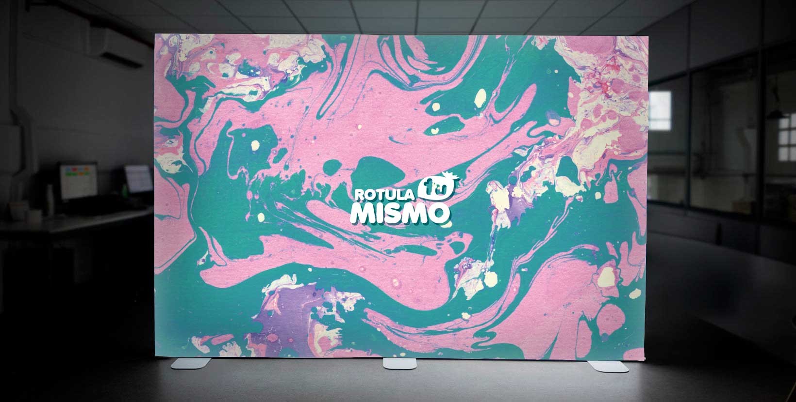 Impreso en textil de 135 g con tintas UVI flexibles y acabado satinado, con borde siliconado y estructura estable de aluminio.