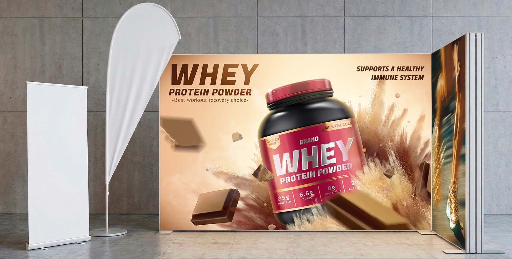 Stands o corners de marca: combina unidades iguales o más pequeñas para reforzar la visibilidad de tu logo o mensaje.