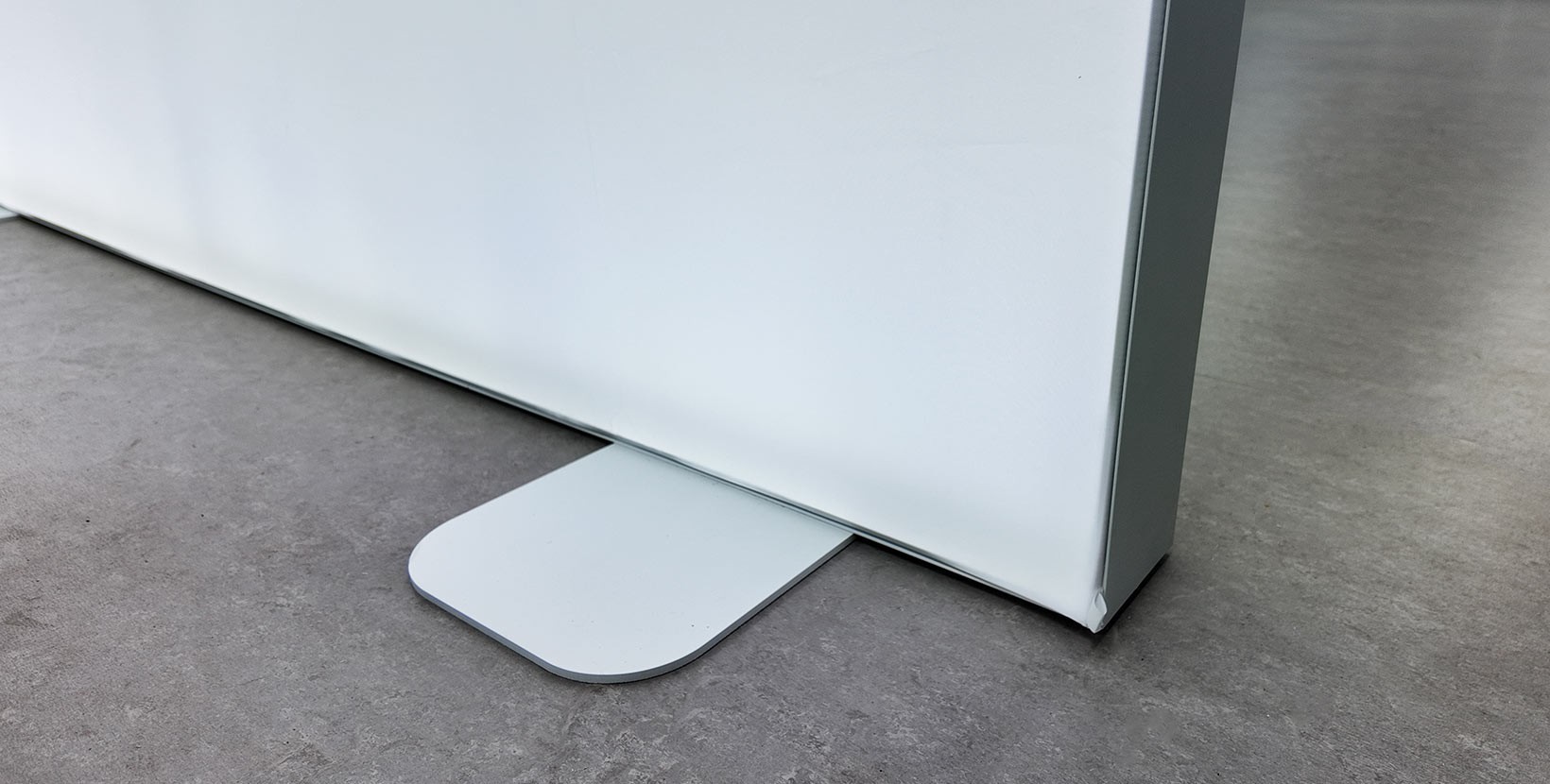 La base del tótem textil se compone de patas de aluminio con unas dimensiones de 30 x 12,5 cm, diseñadas para proporcionar estabilidad estructural y una correcta distribución del peso.
