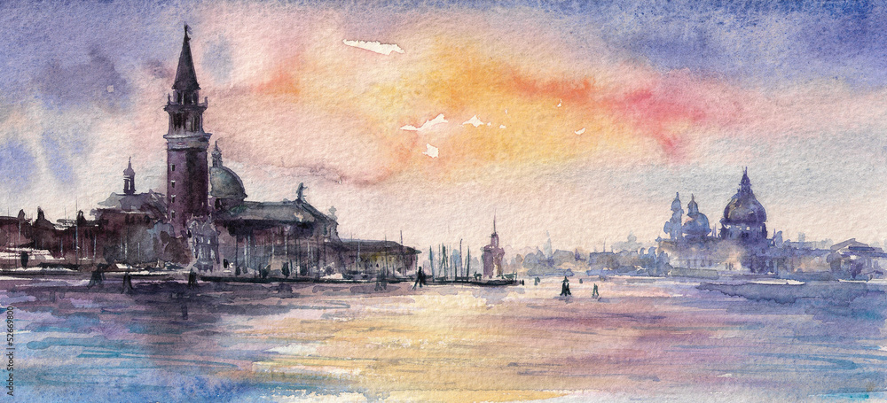 Venice,Italy at sunset.Picture created with watercolors. #52669800