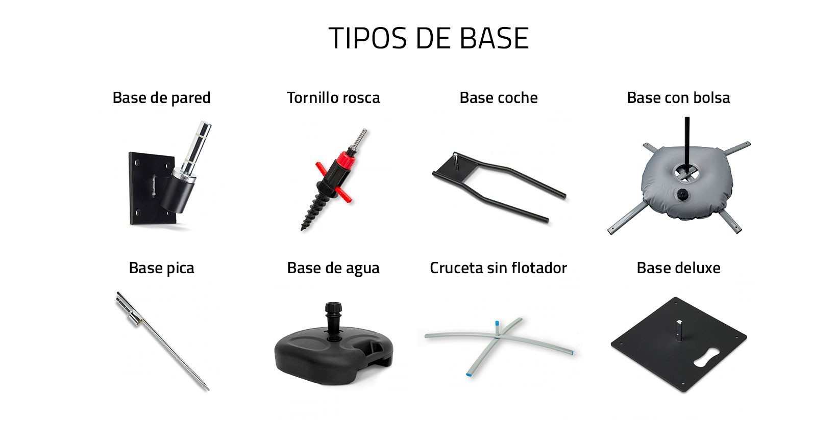 · Base de agua para rellenar: Con esta base de plástico es sin duda la mejor opción para exteriores en los que no podemos clavar nada al suelo como las aceras o pavimento.