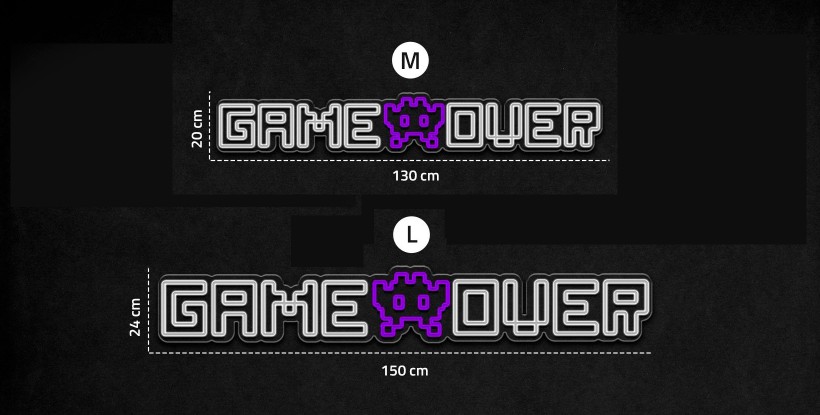 ¿Un verdadero gamer? Si eres amante de los videojuegos ¡Necesitas este neón en tu habitación! Neón led game over disponible en tres tamaños diferentes y con la sujeción de tu preferencia.
