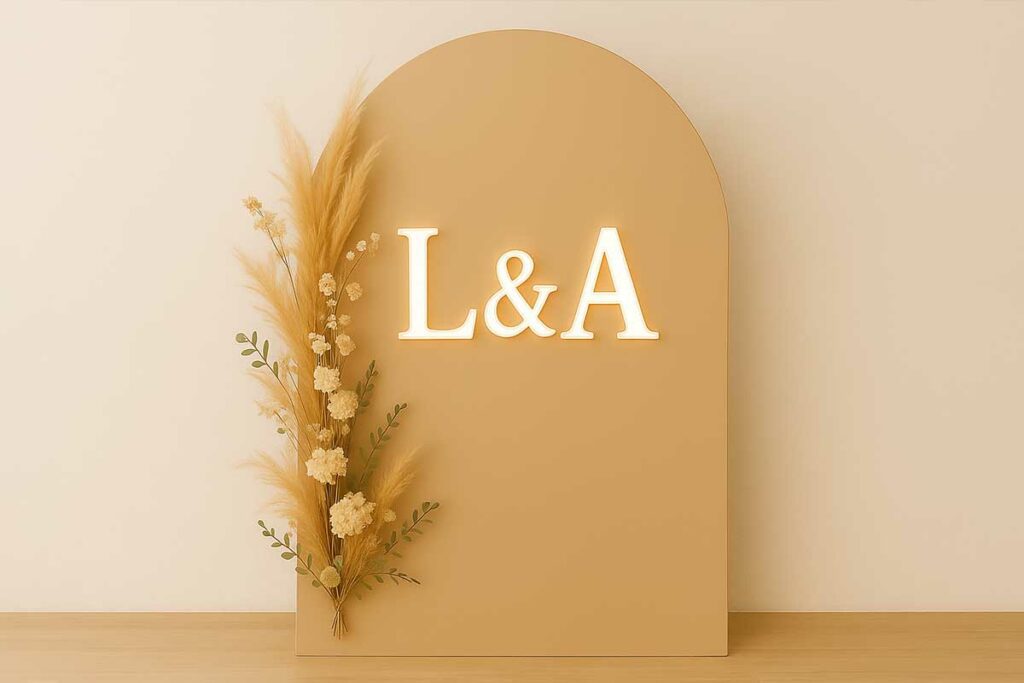 El photocall perfecto en 2026 no grita, susurra con estilo. Combina diseño, luz y emoción. Es sostenible, elegante y fotogénico. Y sobre todo, es tan único como la pareja que se casa.