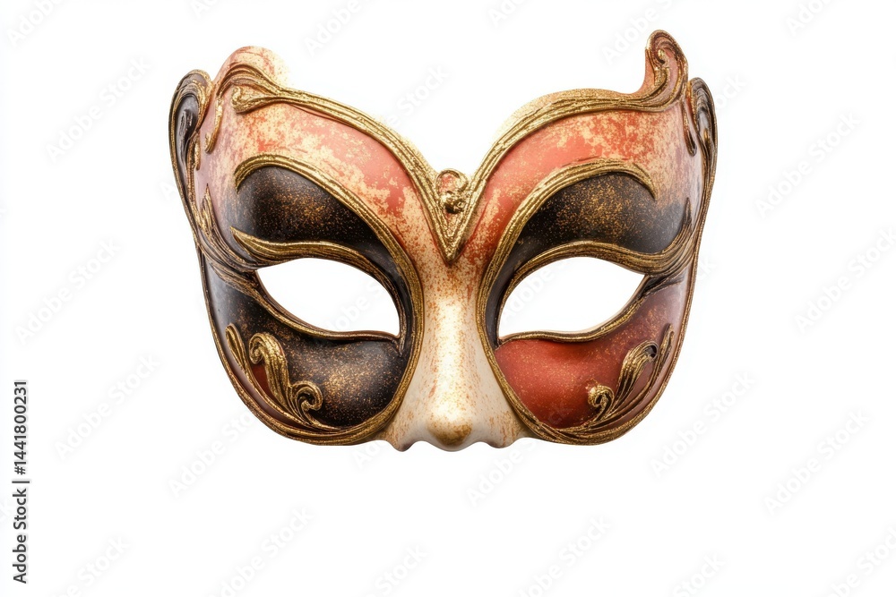 A decorative venetian mask with gold trim isolated on a white background in a studio shot #1441800231