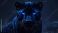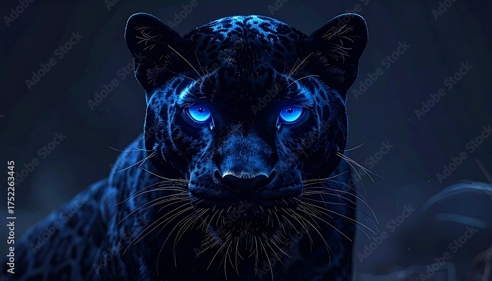 A majestic black panther emerges from the shadows. Intense blue eyes pierce the darkness, captivating the viewer #1752263445