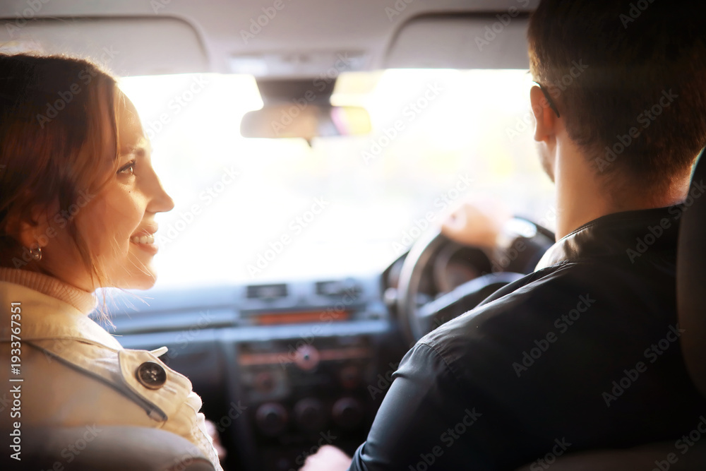 A man and a girl in love on a first date in an autumn city park. #1933767351