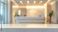 A modern reception desk in a bright lobby with elegant lighting, large windows, and plants. A backdrop for hotel, tourism, service, and corporate waiting areas and interiors #1959825625