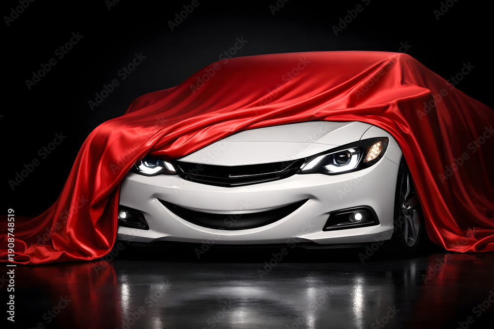 A white car with a red cloth covering it #1908748519