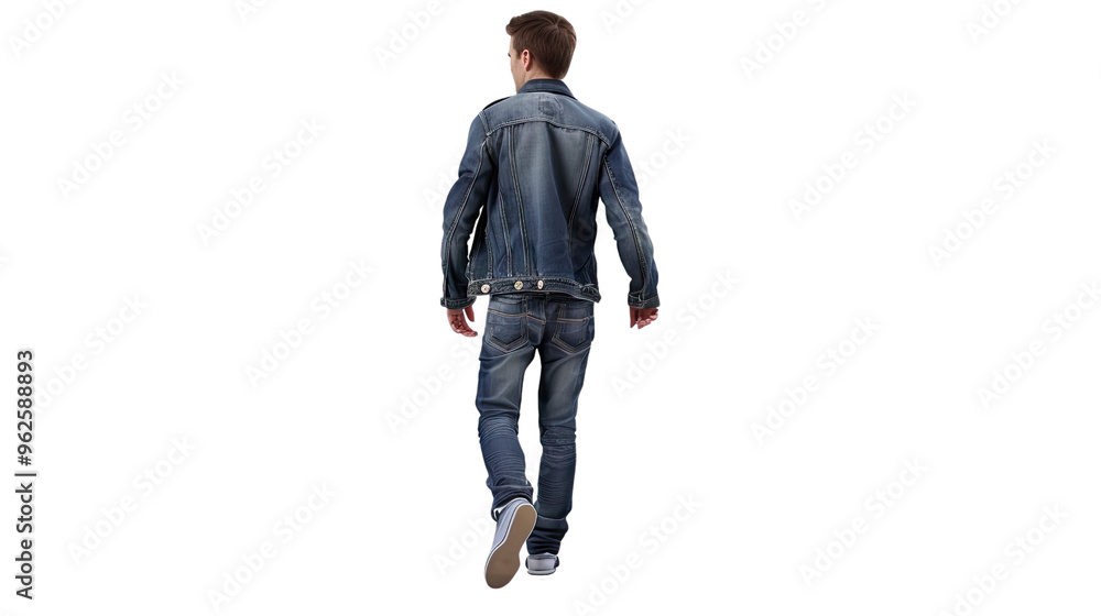 A young man in jeans and shirt walking, back view, cut out isolated over a transparent png background #962588893
