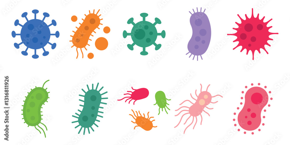 Bacteria, microbe, virus outline vector icon set. Microscopic bacterium and bacillus collection, isolated on white background. #1316811926