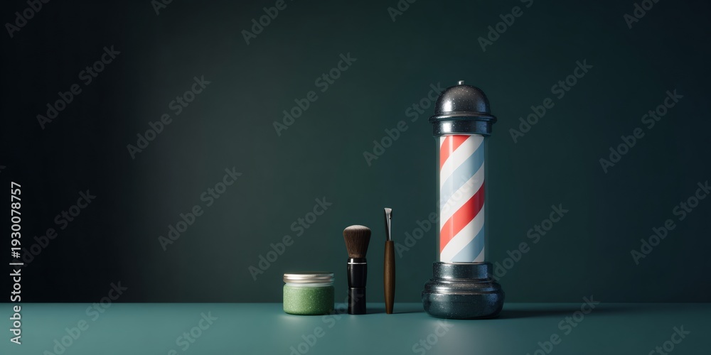 Barber pole with a brush and comb on the table #1930078757