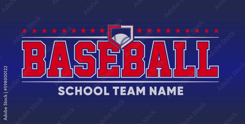 Baseball team design isolated on dark blue black background. School spirit shirts sport fan emblem. For print or cut (Cricut, Silhouette). #598000122