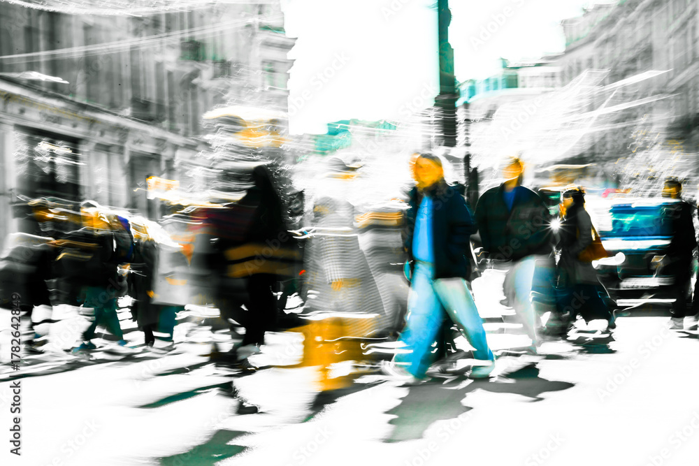 Beautiful postmodernism motion of people walking in London street at sunny day. Shoppers and tourists crossing Oxford circus #1782642849