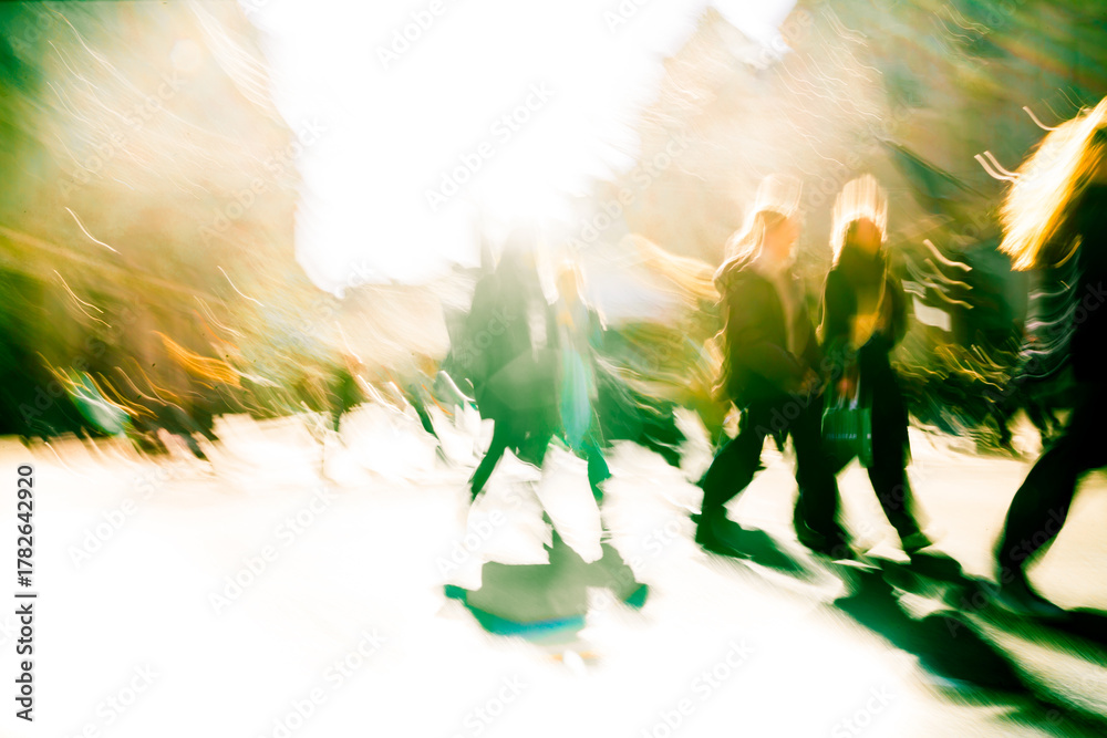Beautiful postmodernism motion of people walking in London street at sunny day. Shoppers and tourists crossing Oxford circus #1782642920
