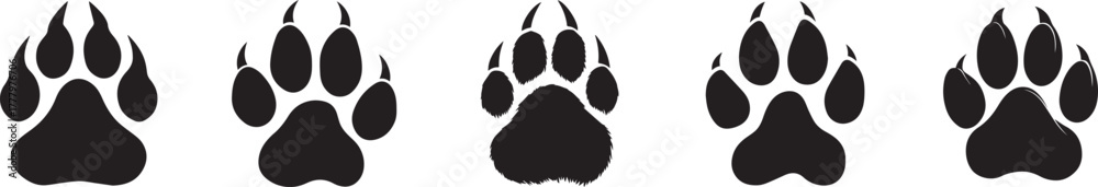 Black animal paw print silhouettes in a row, vector illustration of wild bear and wolf footprints for wildlife design, logo, or pet-related projects, perfect for outdoor, nature, and adventure themes #1777976706