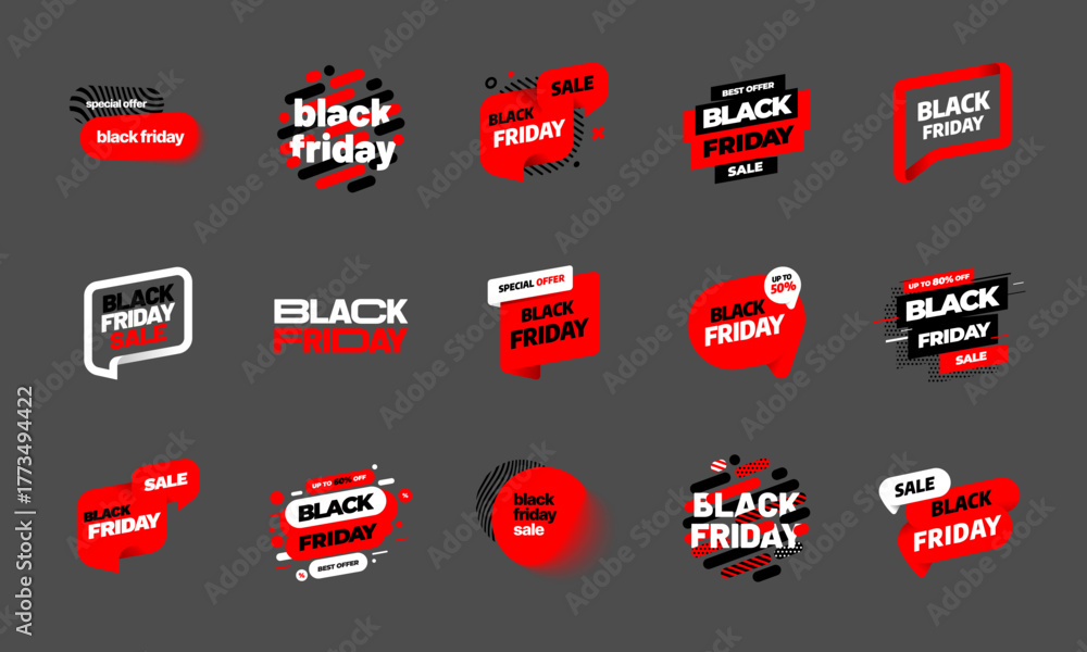 Black Friday banner set. Black Friday sale inscription. Promotion labels collection. #1773494422