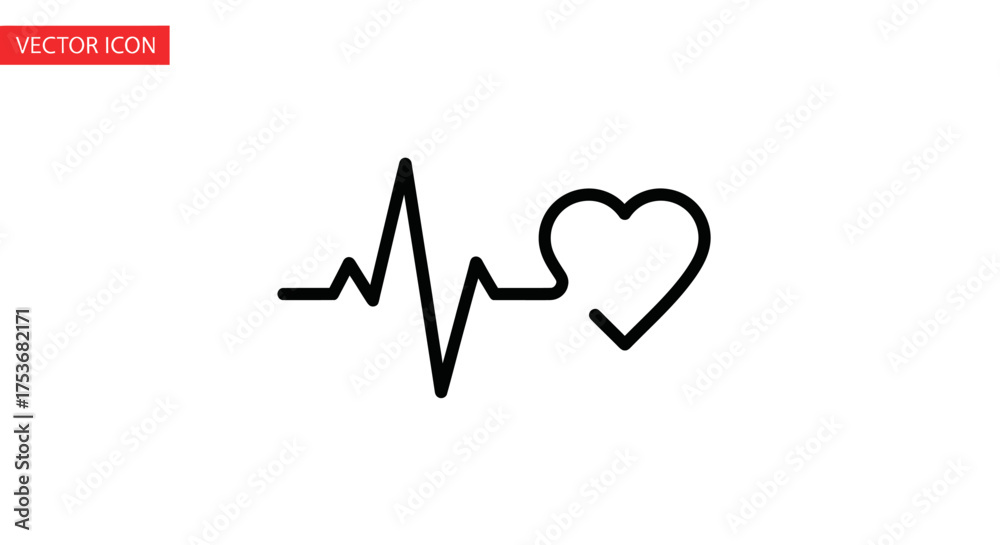 Black line art heartbeat pulse with heart shape icon. #1753682171