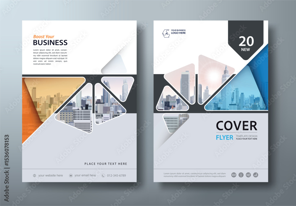 Blue and orange annual report, flyer template, leaflet presentation, book cover templates, layout in A4 size #1536078153