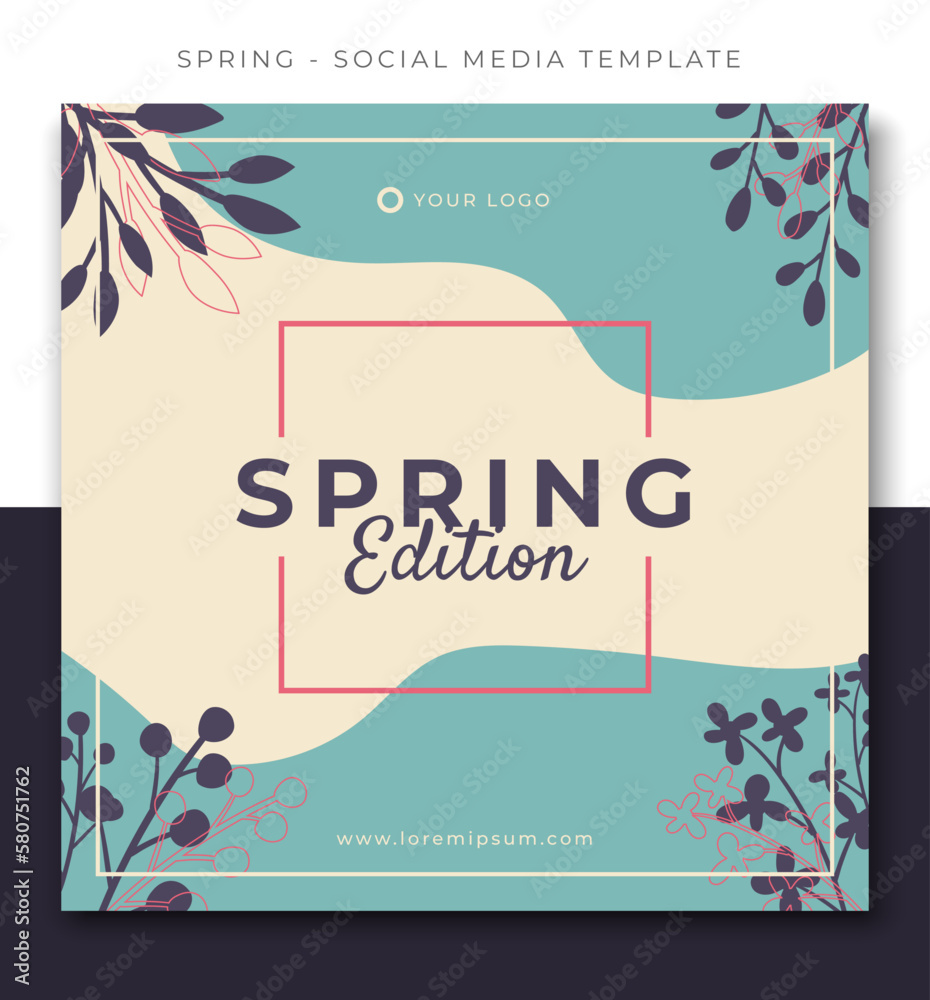 blue flower spring season social media post template design, event promotion banner vector #580751762