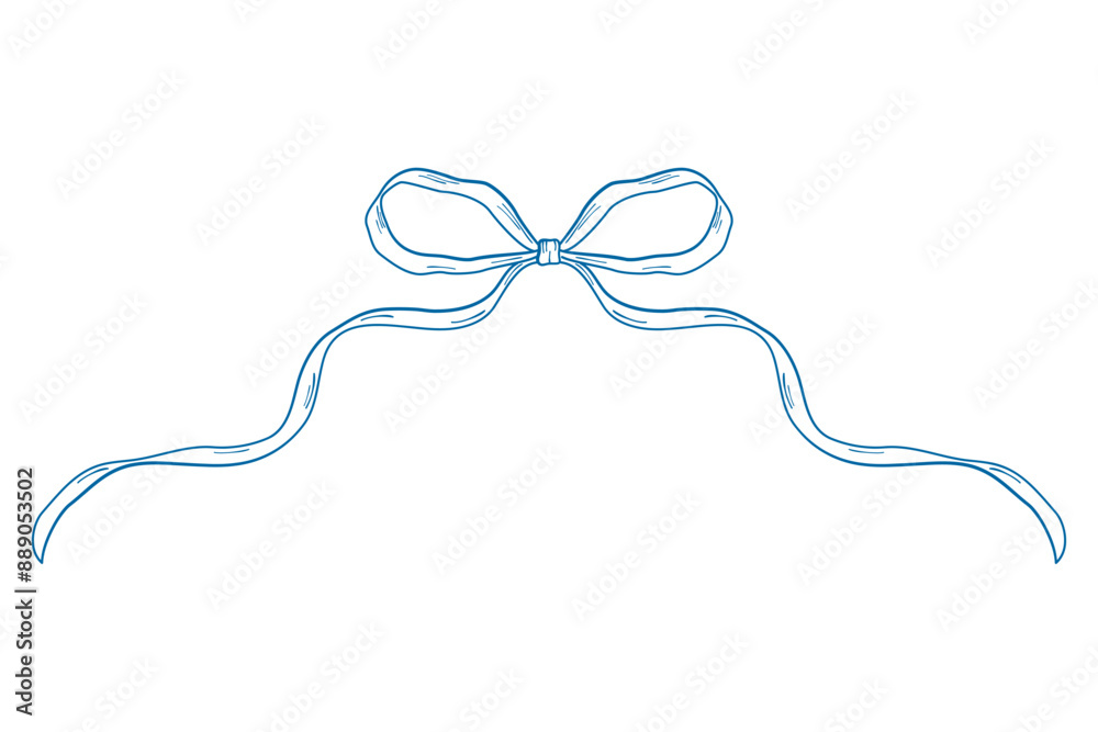 Blue vintage bows frame, Hand drawn ribbons border illustration. #889053502