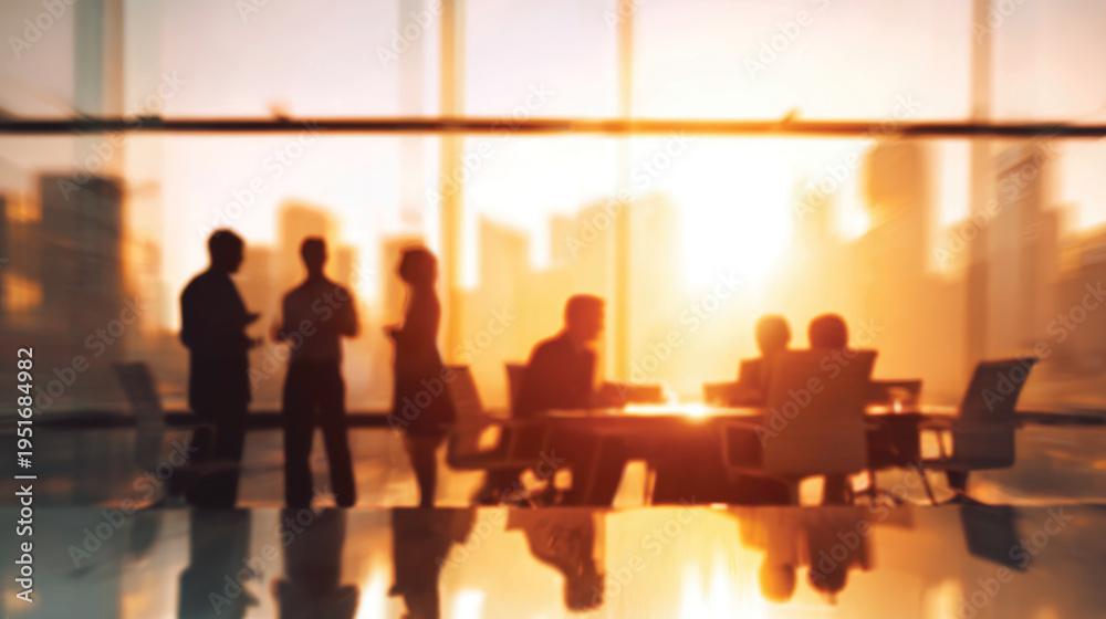 Blurred background of a business team having a meeting in a modern office at sunset #1951684982
