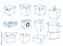 Boxes for different purposes in one vector set, hand drawn illustration #1382894419