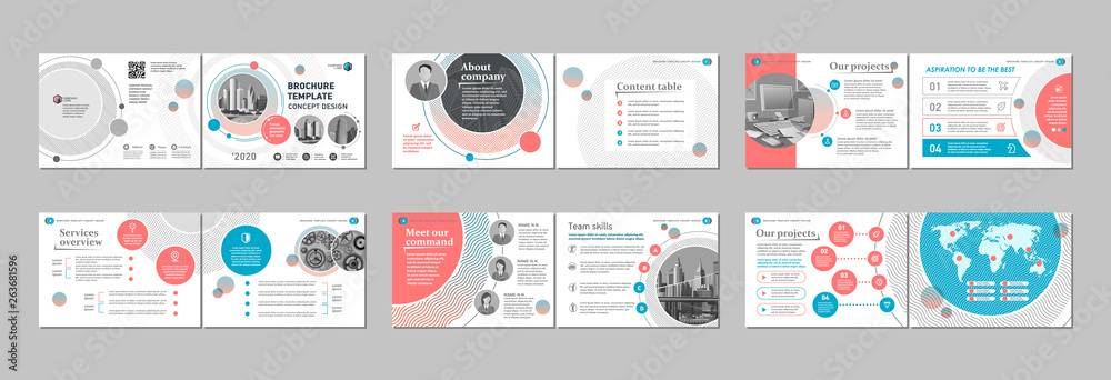 Brochure creative design. Multipurpose template, include cover, back and inside pages. Trendy minimalist flat geometric design. Horizontal landscape a4 format. #263681596