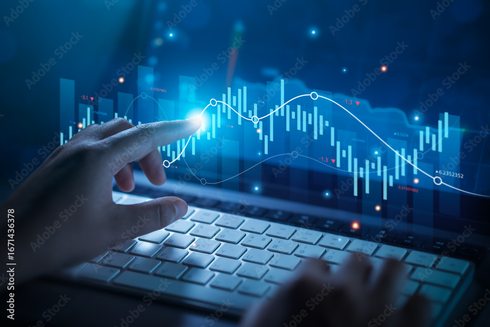 Business growth, businessman analyzing financial sales data, economic growth graph and digital accounting report technology. Financial investment concept, business growth. #1671436378
