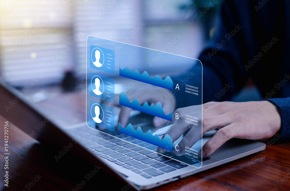 Businessman using people icon concept of development, data exchange, customer service, training, leadership, resources, policy, suggestions, professional team, recruitment, digital technology #1941270756