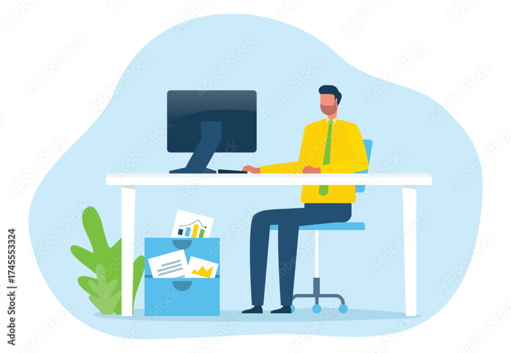 businessman working at the desk with a computer. business smart working online connect anywhere concept. #1745553324