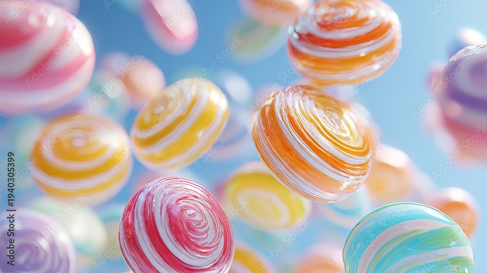 Candy discs, bright and sweet, hover near. #1940305399