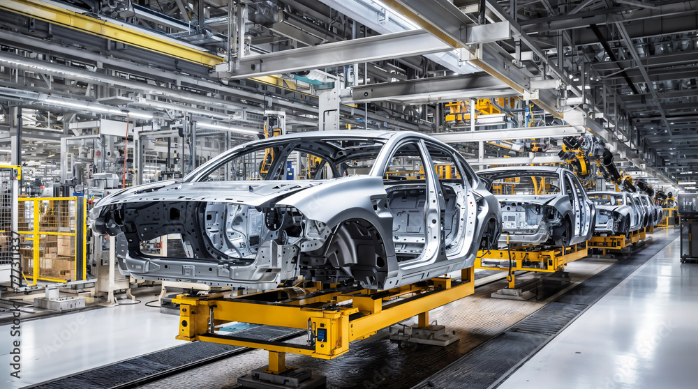 Car assembly line in a modern factory, vehicle manufacturing industry production hd #777311837