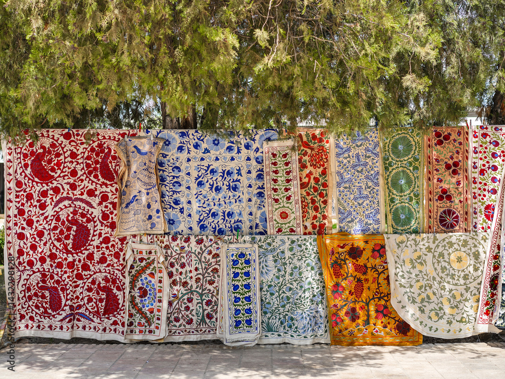 Carpet. Beautiful details of carpet hanging on the street selling as souvenirs from Uzbekistan. Common scenes to see in Uzbekistan. #1432298128