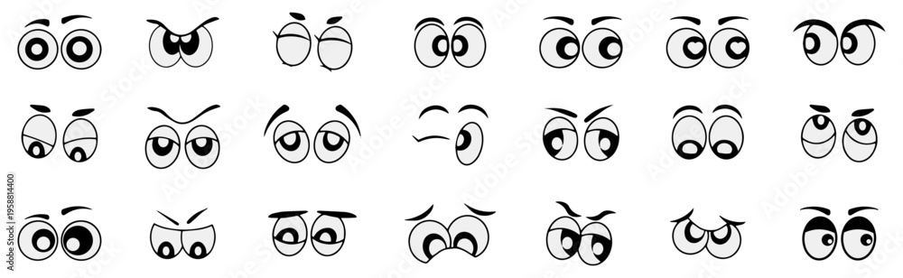 Cartoon eyes collection. Expressive eye shapes with different emotions and styles. Black line character elements for faces and animation #1958814400