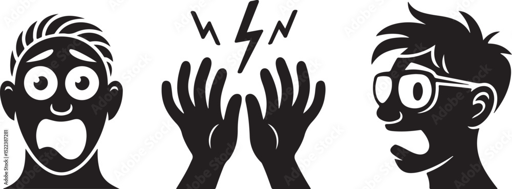 Cartoon Illustration of Shocked and Surprised Faces #1522387281