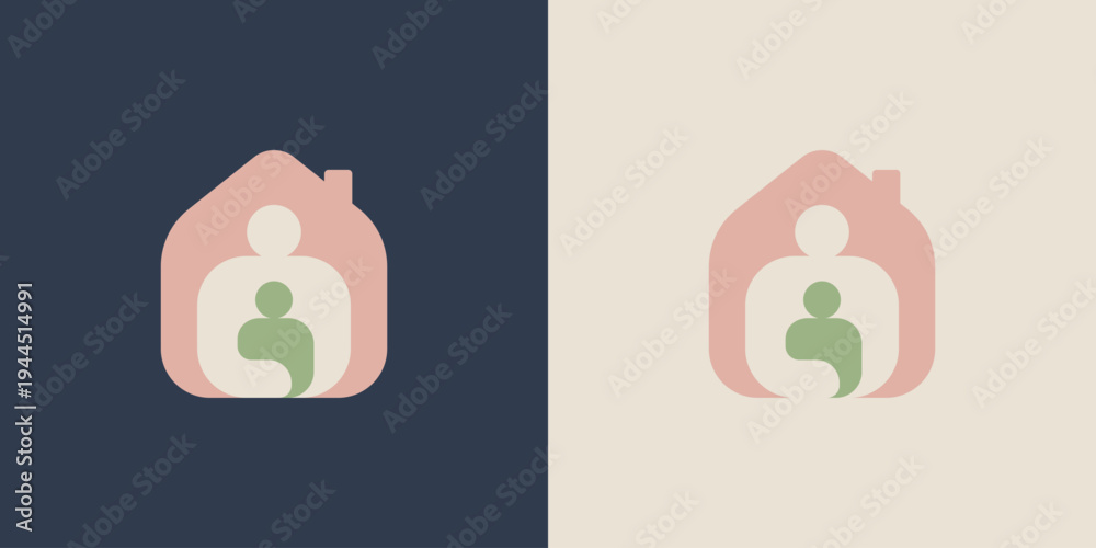 child and adult parent in house icon logo symbol, concept of secure space save home, care support in mental health for family #1944514991