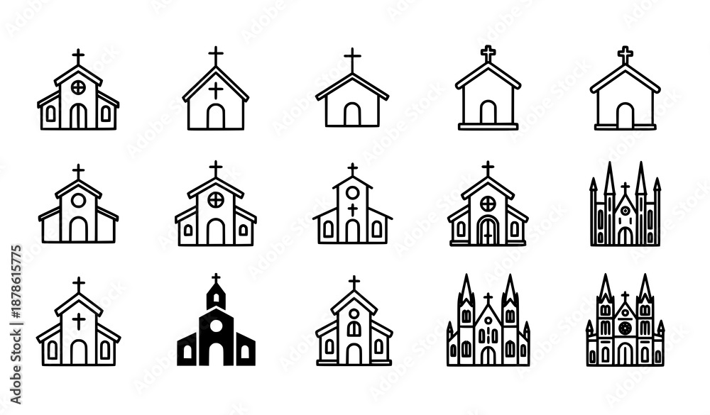 Church and chapel icon grid with religious building symbols in modern line and filled vector design #1878615775